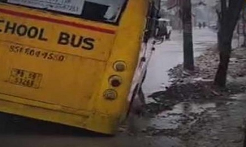 ਜਲੰਧਰ : ਸ਼ਹਿਰ ਵਿੱਚ ਦਿਨ ਭਰ ਪਏ ਮੀਂਹ ਨੇ ਸੜਕ ਨਿਰਮਾਣ ਦੇ ਮਾੜੇ ਕੰਮ ਦੀ ਪੋਲ ਖੋਲ੍ਹ ਦਿੱਤੀ ਹੈ। ਖਾਂਬਰਾ ਸਥਿਤ ਖੁਰਾਣਾ ਮੋਬਾਈਲ ਹਾਊਸ ਨੇੜੇ ਉਸ ਸਮੇਂ ਵੱਡਾ ਹਾਦਸਾ ਟੱਲ ਗਿਆ, ਜਦੋਂ ਬੱਚਿਆਂ ਨਾਲ ਭਰੀ ਇੱਕ ਸਕੂਲ ਬੱਸ ਸੜਕ ਧਸਣ ਕਾਰਨ ਵਿਚਕਾਰ ਹੀ ਫਸ ਗਈ। ਹਾਦਸੇ ਦੌਰਾਨ ਬੱਚਿਆਂ ਵਿੱਚ ਹਾਹਾਕਾਰ ਮੱਚ ਗਈ। ਇਸ ਦੌਰਾਨ ਸਥਾਨਕ ਲੋਕਾਂ ਦੀ ਸੁਚੇਤਤਾ ਨਾਲ ਬੱਚਿਆਂ ਨੂੰ ਸੁਰੱਖਿਅਤ ਬੱਸ ਤੋਂ ਬਾਹਰ ਕੱਢਿਆ ਗਿਆ। ਘਟਨਾ ਤੋਂ ਬਾਅਦ ਇਲਾਕੇ ਵਿੱਚ ਦਹਿਸ਼ਤ ਦਾ ਮਾਹੌਲ ਬਣ ਗਿਆ ਅਤੇ ਲੋਕਾਂ ਵਿੱਚ ਪ੍ਰਸ਼ਾਸਨ ਪ੍ਰਤੀ ਭਾਰੀ ਗੁੱਸਾ ਦੇਖਣ ਨੂੰ ਮਿਲਿਆ ਕਿਉਂਕਿ ਬੱਸ ਦੇ ਪਲਟਣ ਨਾਲ ਵੱਡਾ ਹਾਦਸਾ ਹੋ ਸਕਦਾ ਹੈ।