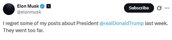 ਇੱਥੇ ਇਹ ਵੀ ਦੱਸ ਦੇਈਏ ਕਿ ਹਾਲ ਹੀ ਵਿੱਚ ਐਲੋਨ ਮਸਕ ਨੇ ਸੋਸ਼ਲ ਮੀਡੀਆ ਪਲੇਟਫਾਰਮ ਐਕਸ ਤੋਂ ਉਹ ਪੋਸਟ ਹਟਾ ਦਿੱਤੀ ਹੈ ਜਿਸ ਵਿੱਚ ਉਨ੍ਹਾਂ ਨੇ ਦਾਅਵਾ ਕੀਤਾ ਸੀ ਕਿ ਡੋਨਾਲਡ ਟਰੰਪ ਦਾ ਨਾਮ ਸੈਕਸ ਅਪਰਾਧੀ ਜੈਫਰੀ ਐਪਸਟਾਈਨ ਨਾਲ ਸਬੰਧਤ ਫਾਈਲਾਂ ਵਿੱਚ ਸੀ। ਮਸਕ ਦੇ ਪੋਸਟ ਨੂੰ ਮਿਟਾਉਣ ਦੇ ਕਦਮ ਨੂੰ ਟਰੰਪ ਨਾਲ ਸੰਭਾਵਿਤ ਸੁਲ੍ਹਾ ਦੇ ਸੰਕੇਤ ਵਜੋਂ ਦੇਖਿਆ ਜਾ ਰਿਹਾ ਹੈ।